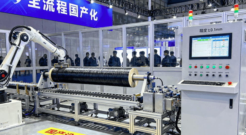 比如鹰游机械,他们展台上摆了缠绕机、氢瓶自动化缠绕示范线,还有预浸生产线,从材料加工到成品成型,一套设备就能搞定;工作人员说,现在国产设备的精度和效率不比进口的差,而且价格能低不少,企业买回去很快就能回本。这其实是个很重要的信号:复材行业要想大规模发展,“降本” 是关键,而设备国产化就是降本的 “核心助力”—— 以前因为设备贵,不少小企业不敢扩产,现在国产设备普及了,更多企业能参与进来,整个行业的产能和创新速度都会提上来。