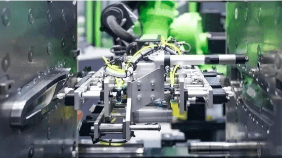 作为注塑与自动化领域的老牌玩家,恩格尔把大批量制造逻辑嫁接到轻量化复材上,这套自主研发的一体化工艺,把增强层铺放、成型、功能集成、成品取出全塞进注塑模具,全程无断点。核心是 “带材夹层注塑”:外层用碳纤维增强热塑性单向带,机器人在模具内精准铺放、真空固定,纤维严格沿受力方向排布,只在关键受力位用材料,把轻量化做到极致。
