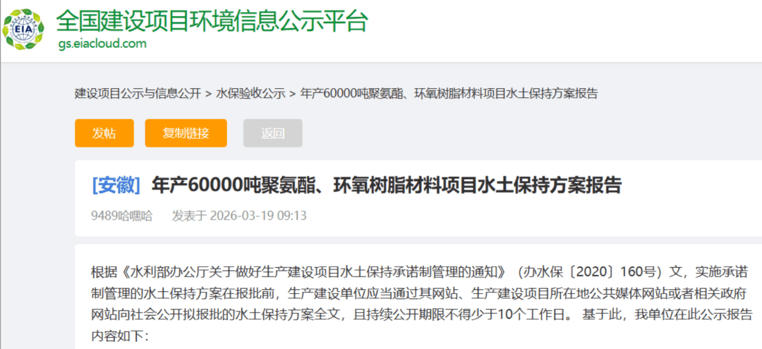 我们将持续关注该项目的建设进展,后续将第一时间为大家带来项目投产、产能释放等最新动态,一起见证国内碳纤维配套产业的成长与突破。 注:本文内容均来自安徽康尼化学有限公司年产60000吨聚氨酯、环氧树脂材料项目水土保持方案公示及公开产业信息整理,具体以项目实际建设及投产情况为准。